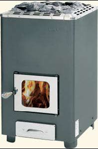 The Mirva model's precision dimensioned firebox and extensive flame circulation guarantee a high efficiency ratio, i.e. more heat, less wood consumption. The Mirva sauna heater is entirely painted. The fire grate is made of cast iron. Glass fire door as standard.
